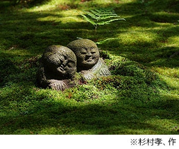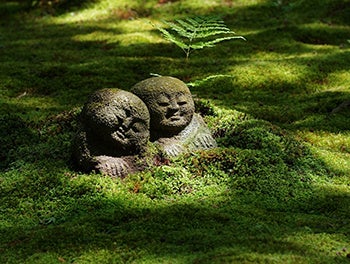 苔むす庭園が美しい静寂の寺院。雨に濡れて生き生きとした青苔と杉や檜の木立が美しい有清園(ゆうせいえん)と、客殿から観賞できる聚碧園(しゅうへきえん)の2つの庭園があります。特に有清園は雄大な池泉回遊式で散策が楽しく、点在する「わらべ地蔵」も小さくて可愛らしい。