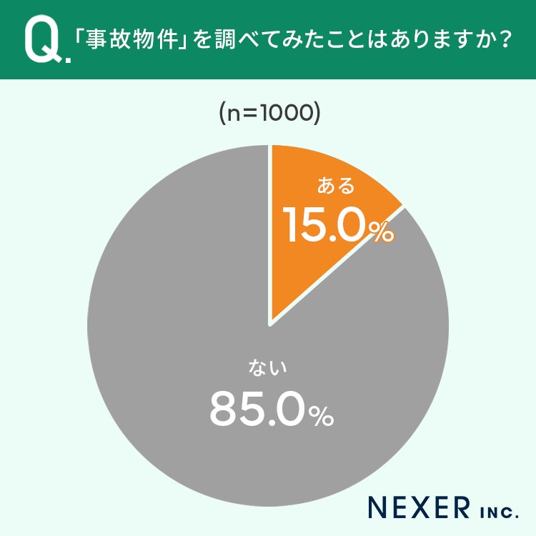 15%の方が、事故物件を調べてみたことが「ある」と回答しています。