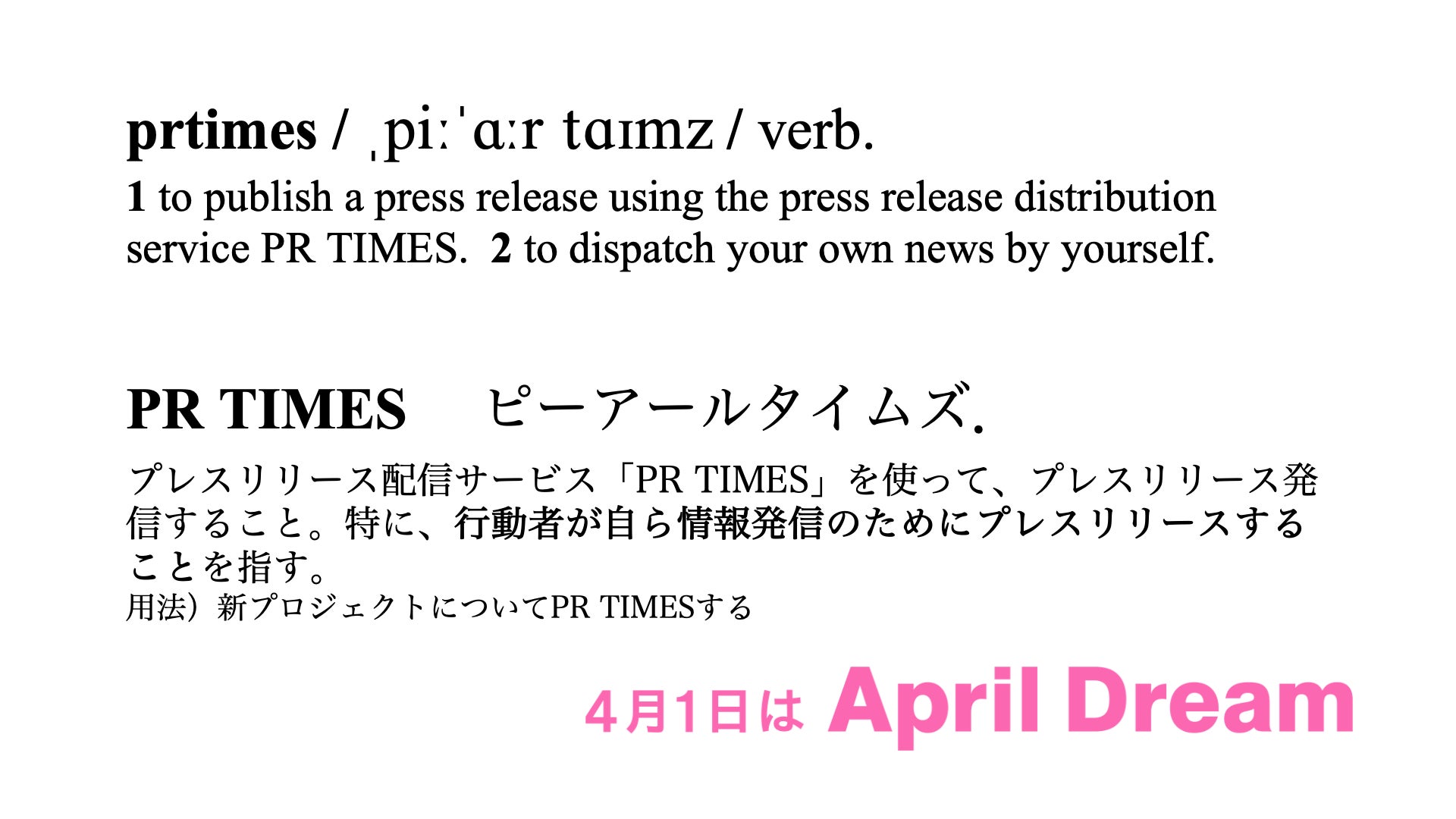 4月1日、April Dream。このプレスリリースはPR TIMESの叶えたい夢です。