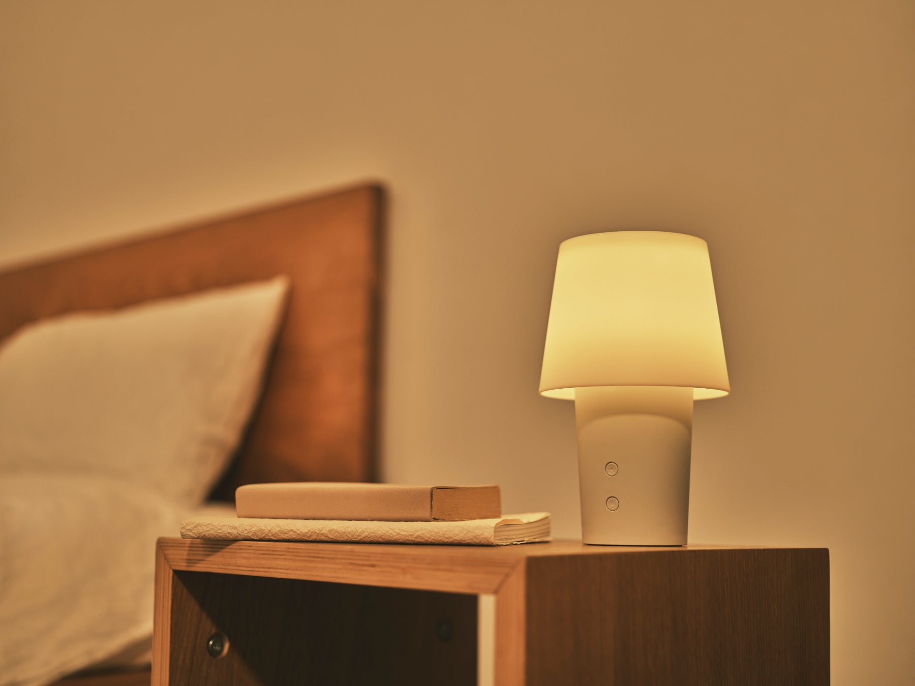 また、好きな明るさでお部屋を灯せる電球色のLEDライトは無段階調光式で、ライトボタンを押すと明るさが最小→最大→最小の順で自動的に変わります。もう一度ライトボタンを押すとお好みの明るさに固定することも可能です。(調光モードは17秒間で繰り返します。)
