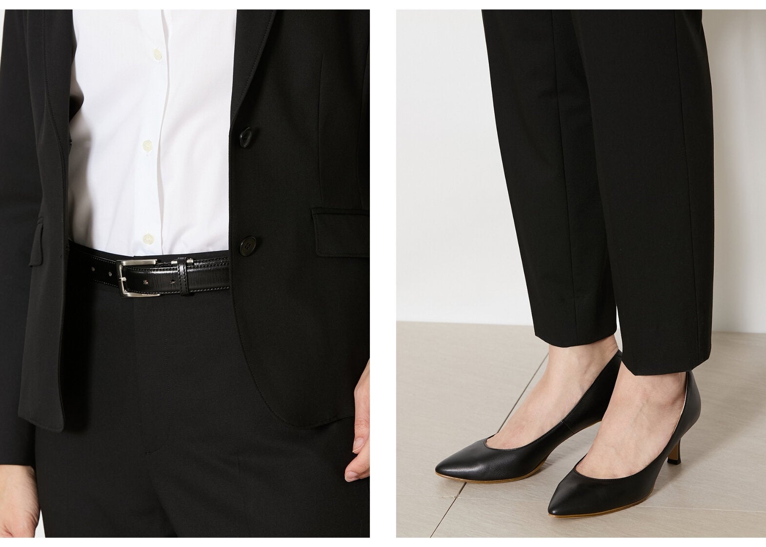 ベルトや小物は、装い全体を引き締める役割があります。ベルトやシューズも黒を基本に、装飾の少ないシンプルなものを選びましょう。アクセサリーは控えめにし、必要最小限にまとめることで、落ち着いた印象に仕上がります。