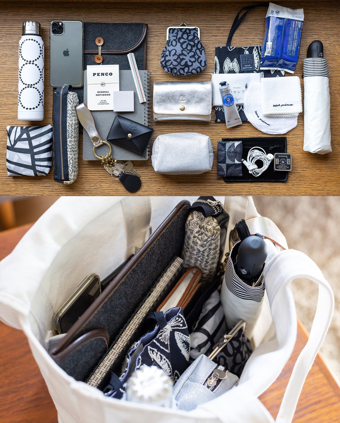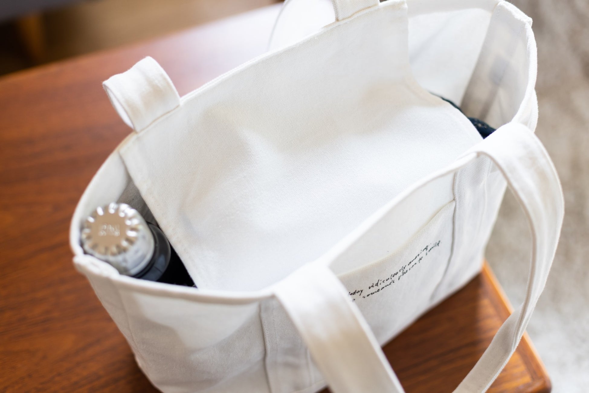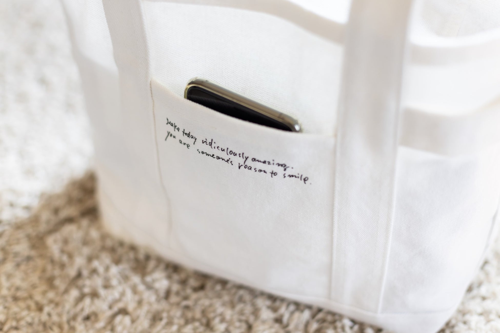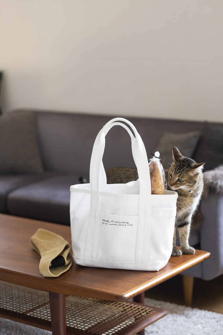 しっかりした生地でたっぷり入るのに、ちょっとしたお出かけに便利な絶妙なサイズ感や肩掛けしやすい長めの持ち手など、何度も試作を繰り返して納得のいく仕上がりに。長く大切に使いたい、日々の暮らしに寄り添う特別な白いバッグが完成しました。