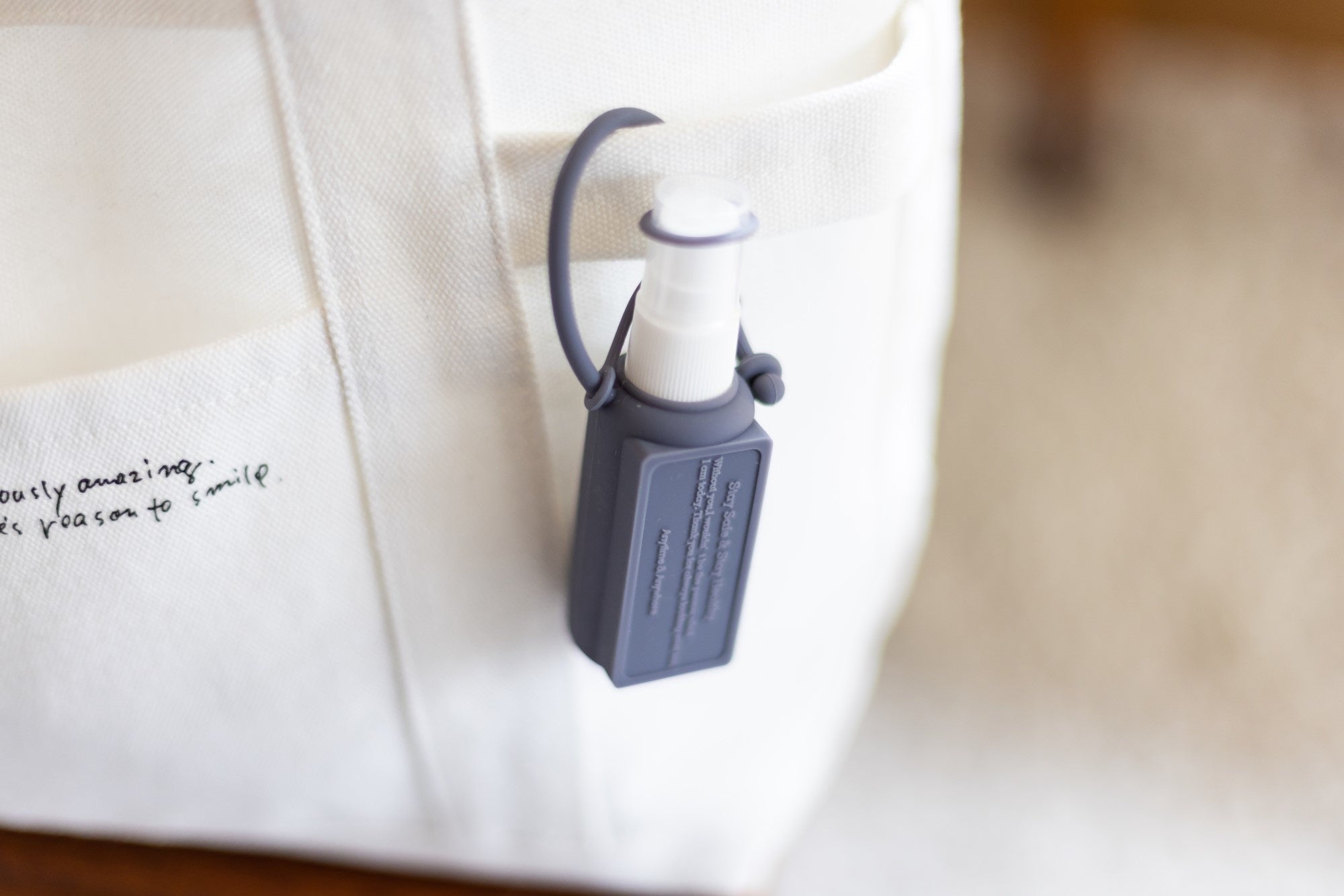 ▼除菌スプレーホルダーやIDケースなどを吊り下げられるループ