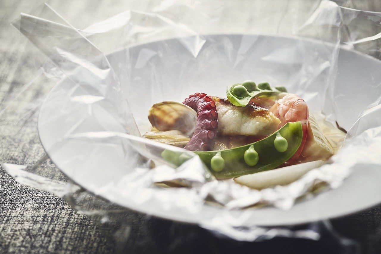 長崎に溢れる旬な食材をふんだんに使用し、和・華・蘭の要素を取り入れ、味覚も視覚も香りもお楽しみいただける唯一無二のコースに仕立てています。特にメインの魚料理は、カルタファタで包むことで旨味を閉じ込め、豊かな香りとともに味わえる逸品です。前菜からデザートまで、長崎の豊かな食文化と季節の恵みを味わえる、当ホテルならではの春の食体験をお楽しみください。