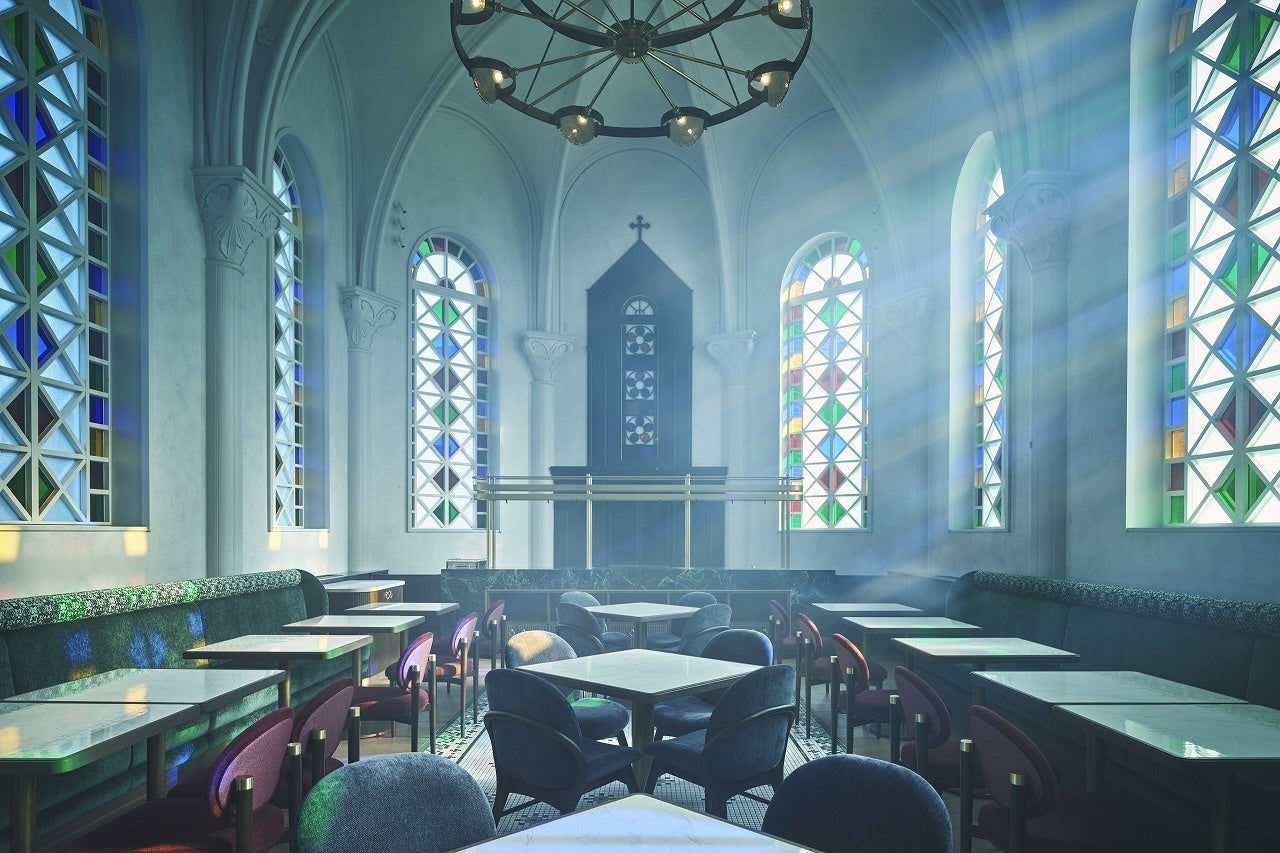 レストラン「Restaurant Cathedréclat」の幻想的なステンドグラスの下で、長崎の春を味わう特別な夜のひとときをお楽しみください。