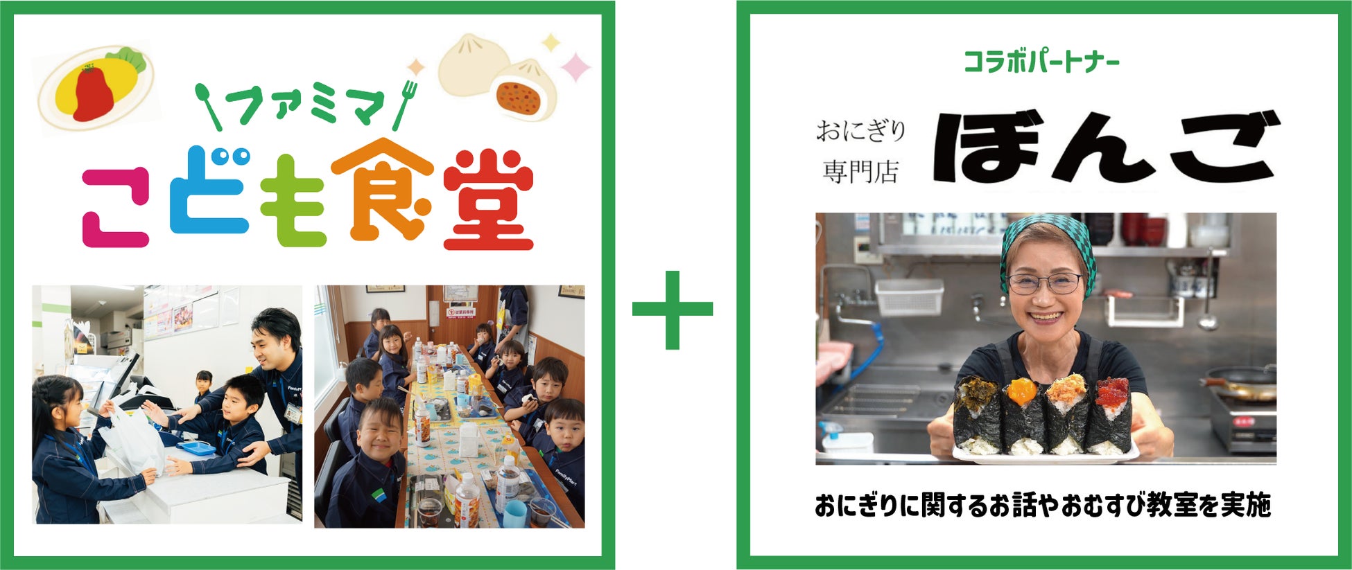 株式会社ファミリーマート(本社:東京都港区、代表取締役社長:細見研介、以下「ファミリーマート」)は、おにぎり専門店「おにぎり ぼんご」(店舗:東京都豊島区、店主:右近由美子)と、「ファミマこども食堂」において、11月17日の『家族の日(※)』に、親子おむすび教室をファミリーマート豊島千早一丁目店(東京都豊島区)にて共同開催いたします。