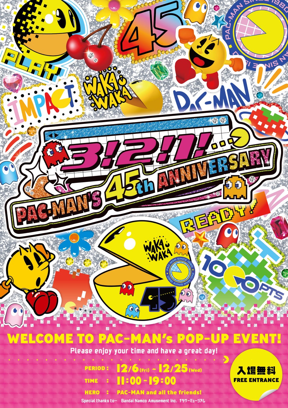 『パックマン』は2025年に45周年!スタートダッシュとしてイベント「3! 2! 1!...PAC-MAN'S 45th ANNIVERSARY!」が12月6日から東急プラザ原宿「ハラカド」にて開催!