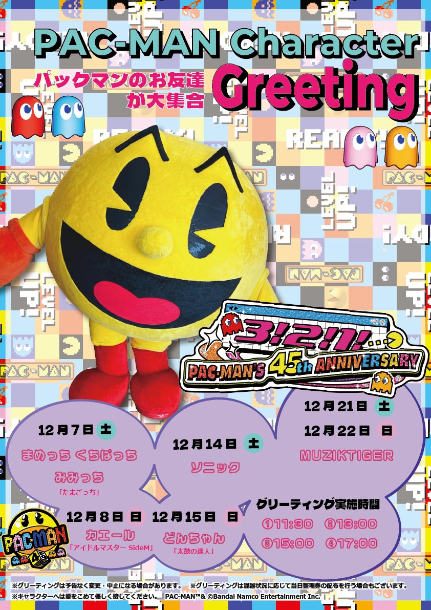 パックマン45周年のお祝いにお友達が集結!キャラクターグリーティングを毎週末開催!