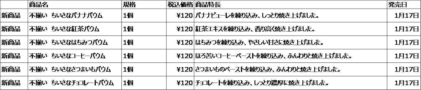 1/17(水)無印良品 人気の不揃いバウムから小さめサイズ6種 新発売