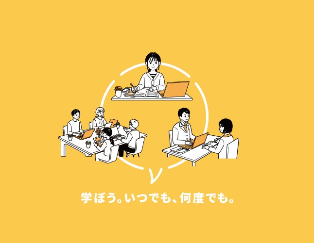 忙しい社会人に経済面の負担をかけずに学習できるよう、160以上の講座を、「月額、サブスクリプション」で提供します。隙間時間に学習できるよう身近な商業施設内に設けられたコワーキングスペース形式の教室では、学習前の相談から資格取得まで経験豊かなキャリアカウンセラーがサポートします。