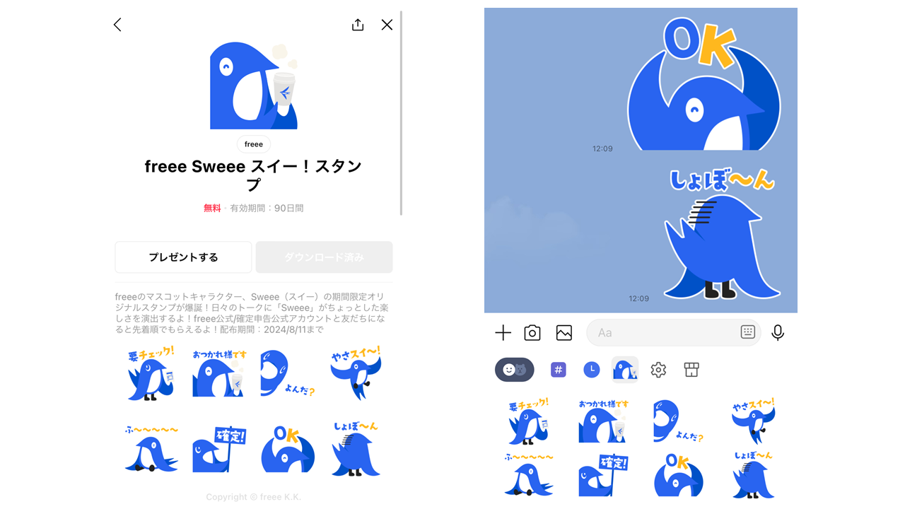 オリジナルキャラクター「Sweee」のスタンプで日常の会話をちょっと楽しく