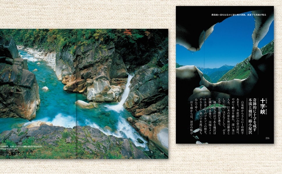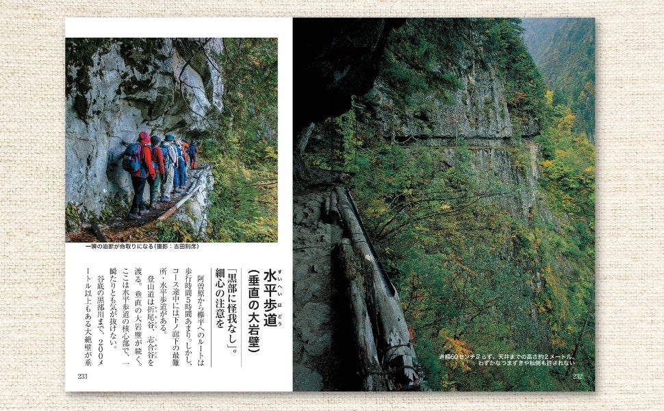 他に、エキスパートのみが辿れる大峡谷「上ノ廊下(かみのろうか)」と、初・中級の沢登り「赤木沢」の紀行文なども掲載しています。