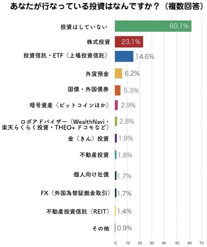 「投資はしていない」6割以上!興味はあっても実際にしている人は少なめ