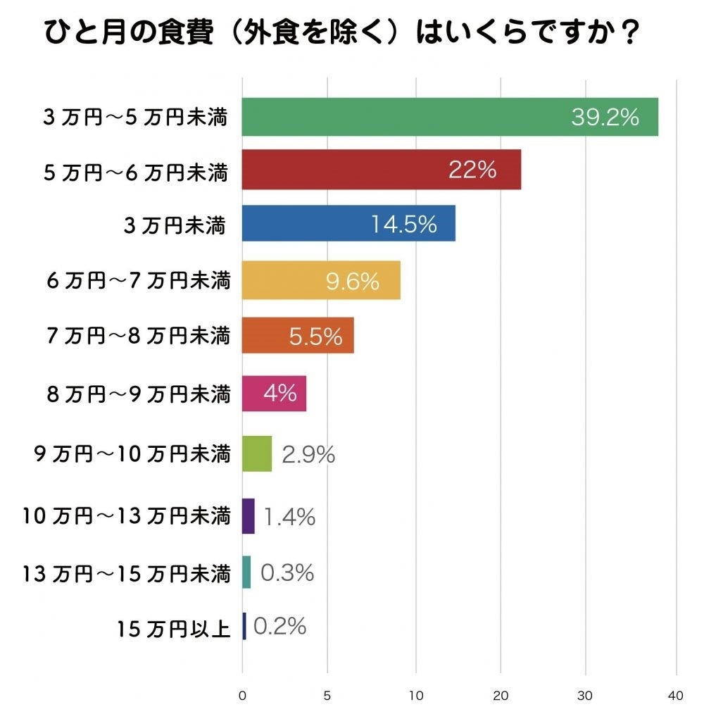コロナ以降、子育て世代の外食機会も減少しています。外食を除く食費について調査した結果、53.7%の家庭が食費は5万円以下という回答に。