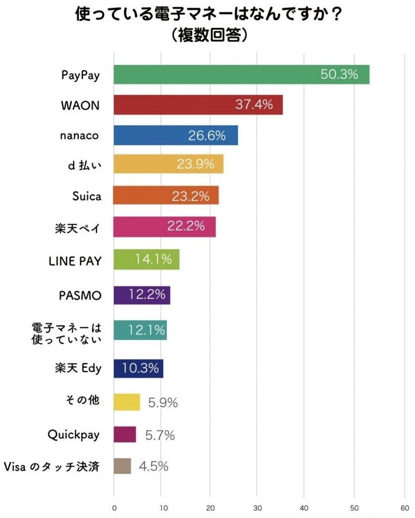 ・使っている電子マネー1位「PayPay」 2位「WAON」 3位「nanaco」