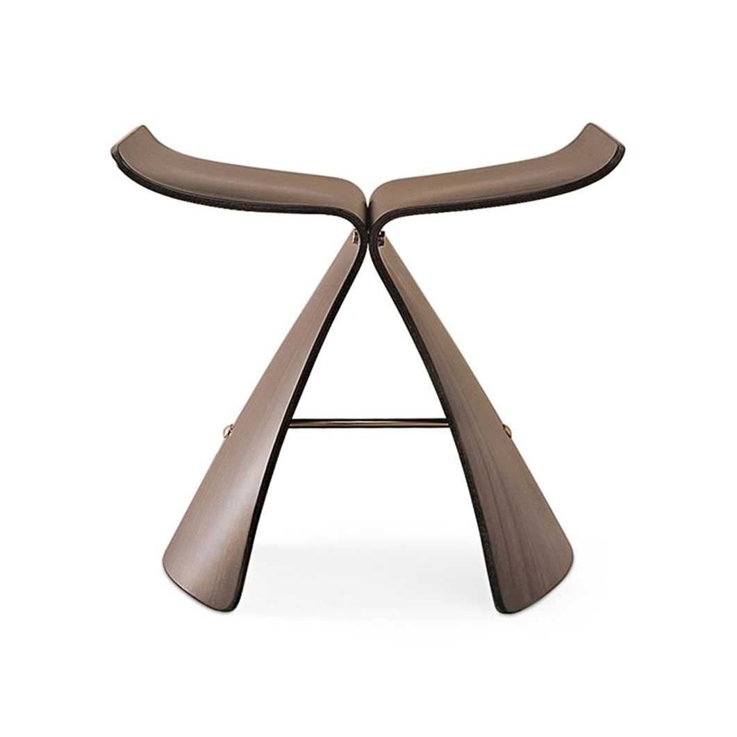日本の工業デザインのパイオニアである柳宗理が1954年にデザインしたバタフライスツールは、その独特なフォルムが見る人に強い印象を与え、その名のごとく蝶々が羽を広げた様なフォルムをしていることから、世界でもこの名で知られています。同一の成形合板を2枚左右に組合せ、金属棒で連結するという非常にシンプルな構造です。