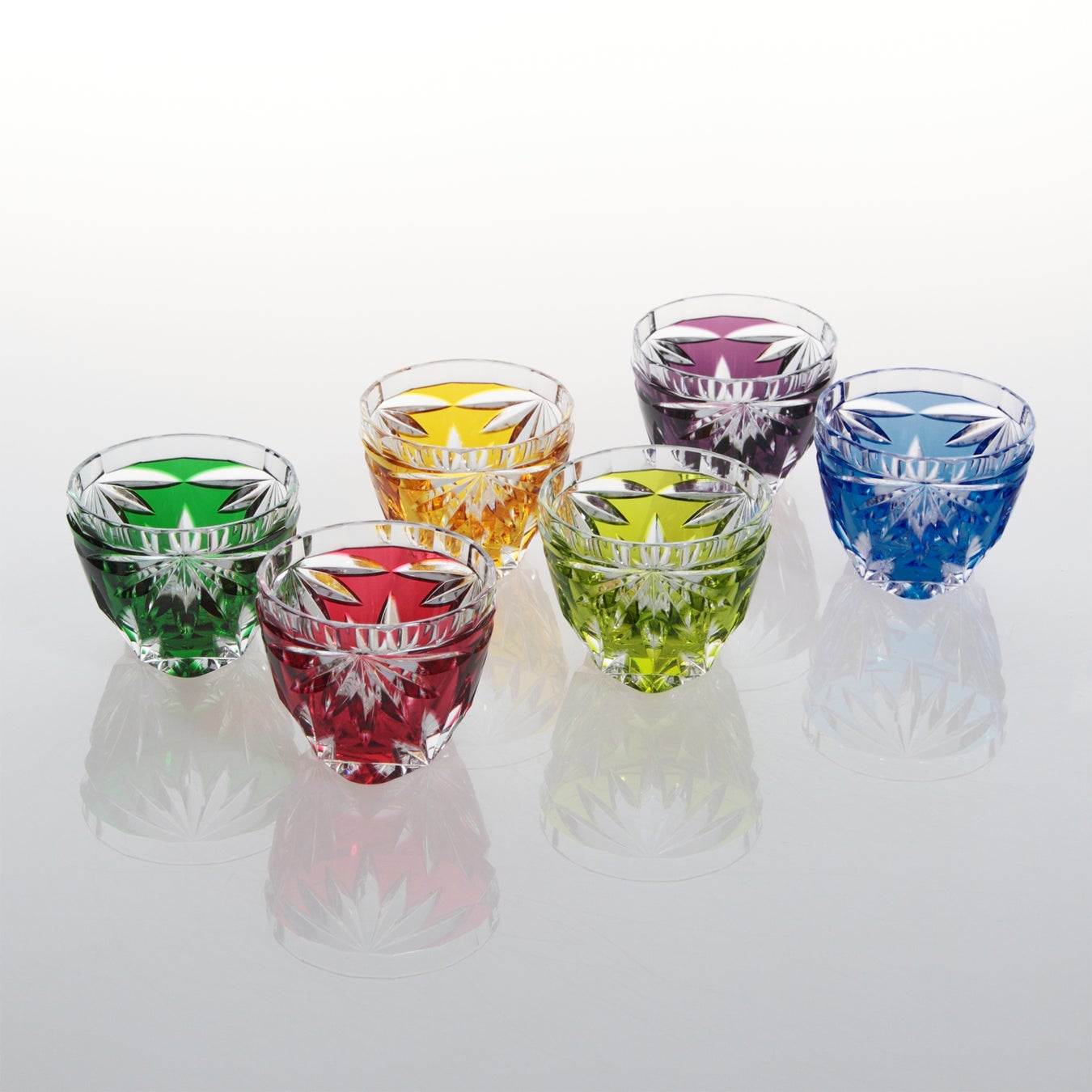 菊花文の菊は「喜久」と当てて、喜びが久しくあることを願う想いが込められています。全体的にコロッと丸い印象がかわいらしい菊花文ぐい呑ですが、飲むときの目線でじっくり底を眺めてもらうと三角の印象にも思えてくる仕掛けをお楽しみ頂けます。呑み口の口当たりがよくなるようにカットされていて、機能面でも優秀なぐい呑です。