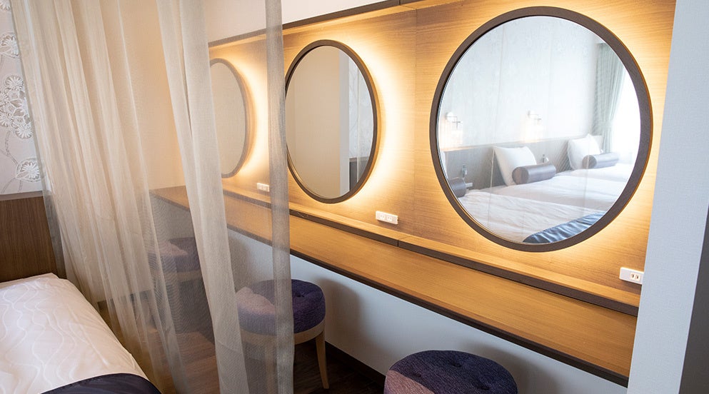 ドレッシングテーブルは人数分設置されており、明るく清潔感があります。