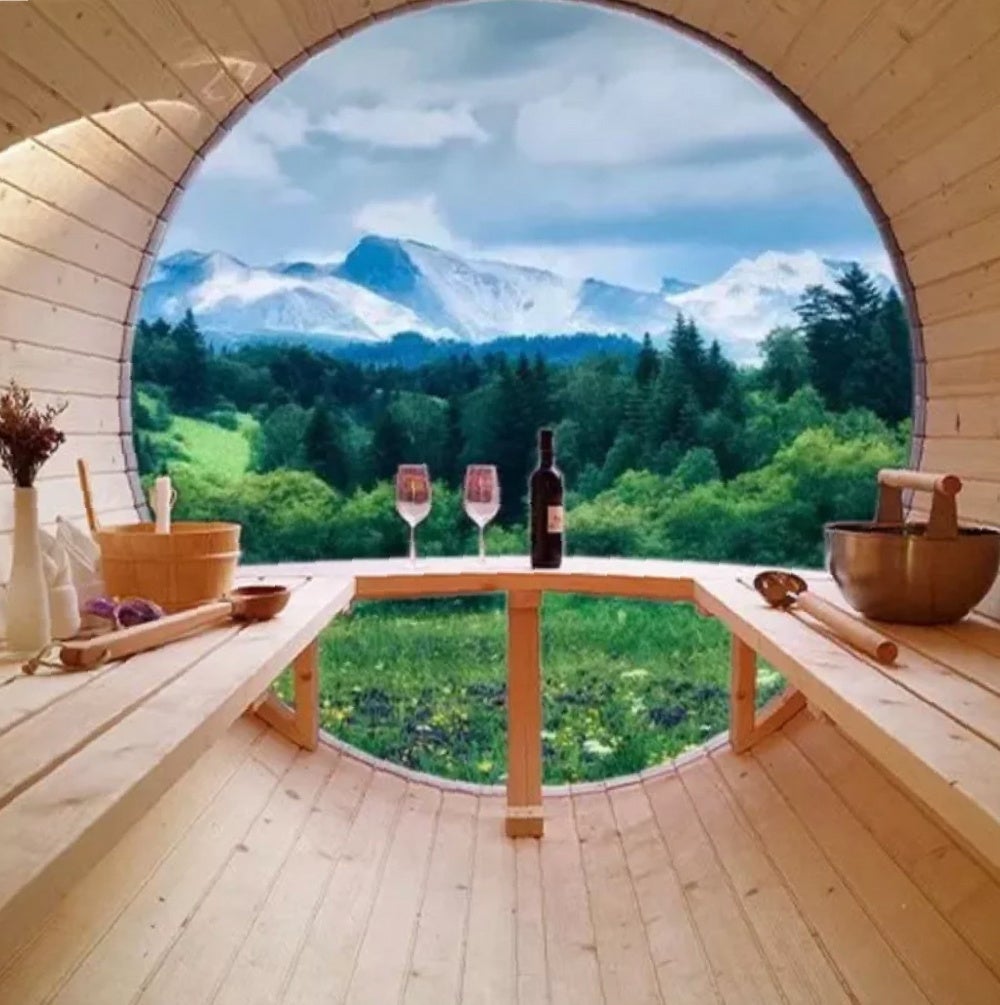 - 木製サウナと自然がマッチして樽型のスタイリッシュな北欧デザイン