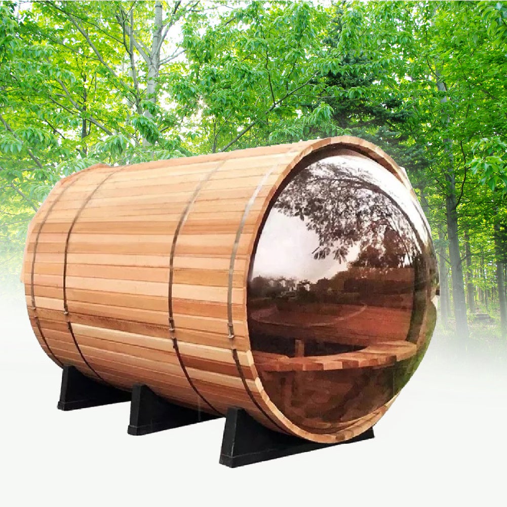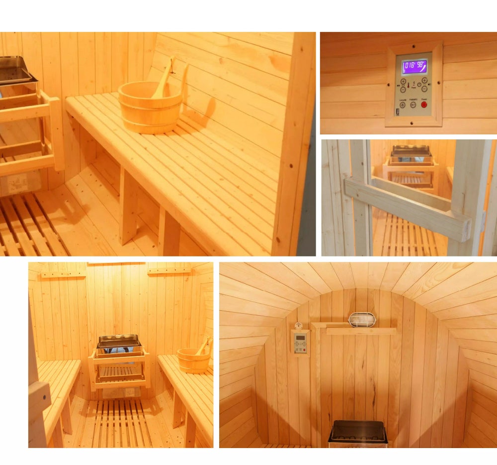 ●レッドシダー木製の組み立て式、北欧バレル式サウナ3〜4人用