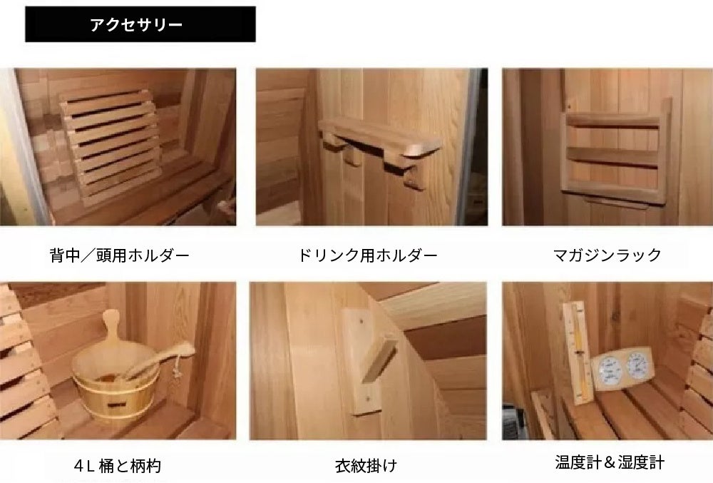 アクセサリー部分も組み立て後に設置して、サウナをお楽しみください。