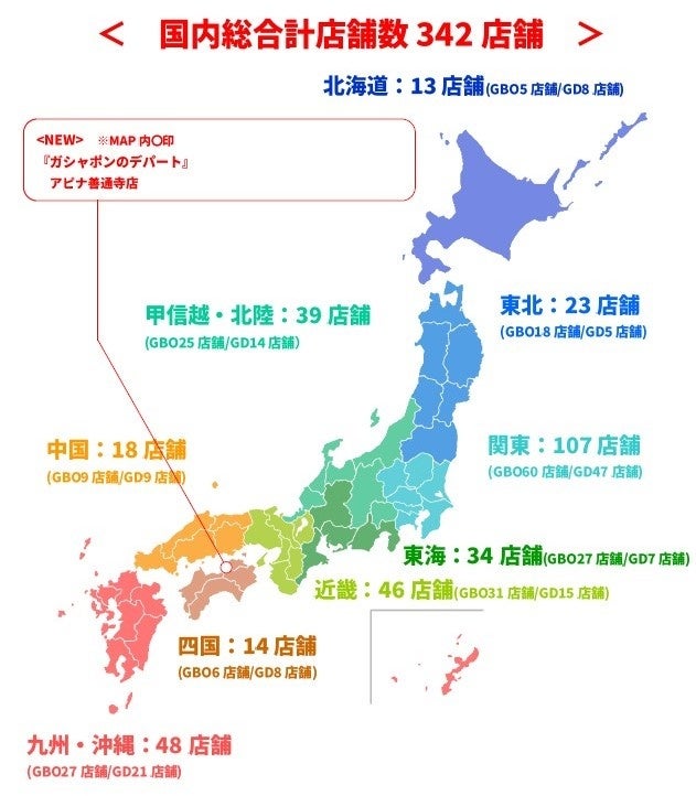 『ガシャポンのデパート』アピナ善通寺店は、「アピナ善通寺店」内に、設置面数480面のカプセルトイ専門店としてオープンします。新商品から話題の商品まで幅広い商品展開で、子どもも大人も関係なく、いつ遊びに来ても自分のお気に入りのガシャポンを探すワクワク・ドキドキが楽しめます。