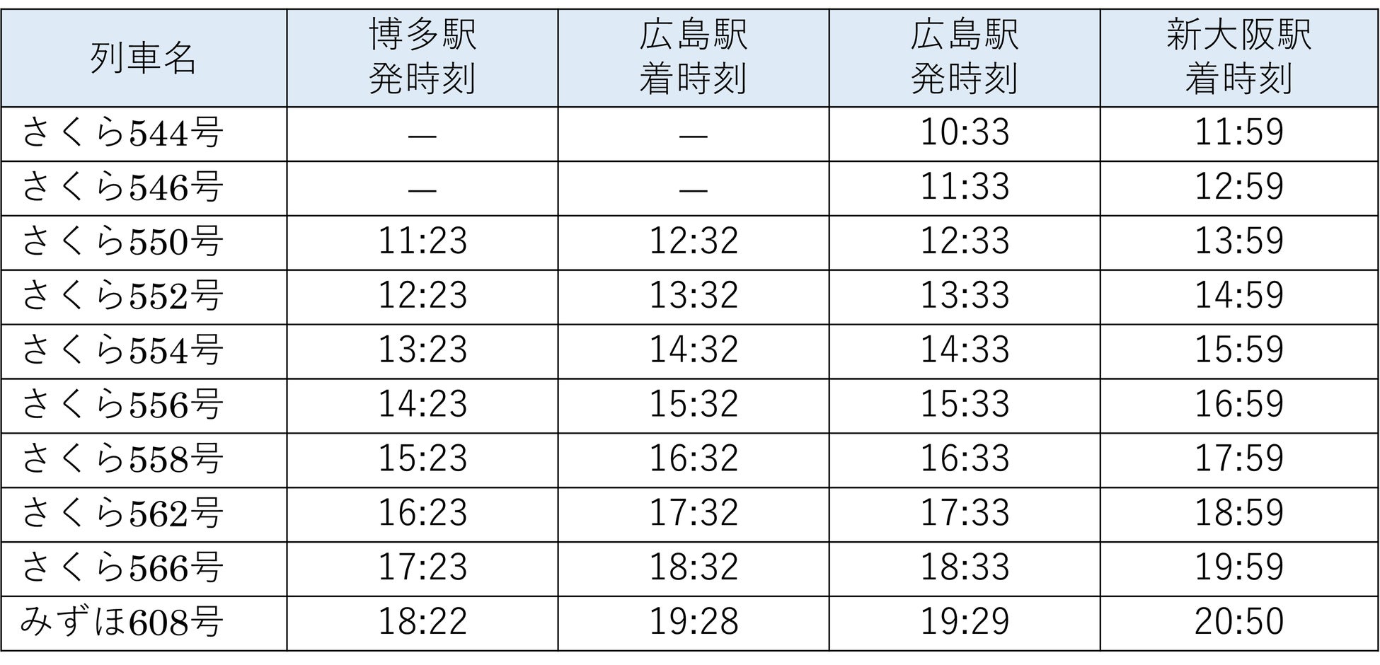◆山陽新幹線上り(博多駅→広島駅→新大阪駅)