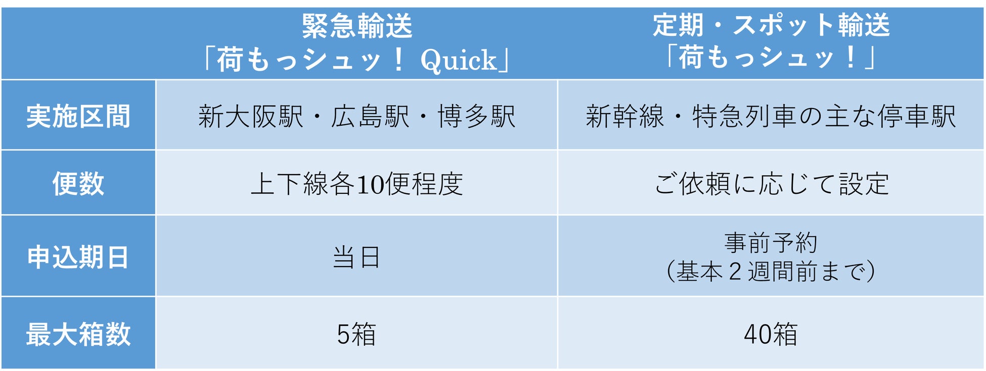 西日本旅客鉄道株式会社(以下、JR 西日本)及び株式会社ジェイアール西日本マルニックス(以下、マルニックス)は、このたび、新たに法人のお客様を対象に「当日受付・即日配送」を可能とする緊急輸送サービスを2025年7月1日より新大阪・広島・博多の相互駅間において開始いたします。