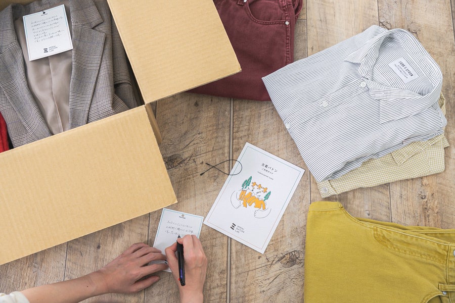 古着バトンは、不要な服を回収し、会員様と協力して再販売(販売出来ないものはリサイクル)や寄付を行うなど、服を捨てずに循環させることで、環境負荷の軽減を目指す取り組みです。
