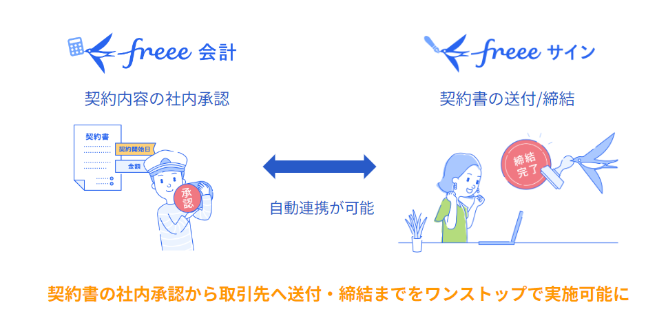 今回、freeeサインとfreee会計のワークフローを連携することにより、社内承認を得た契約書をfreeeサインに自動連携し、そのまま契約書の送付・締結が可能になります。
