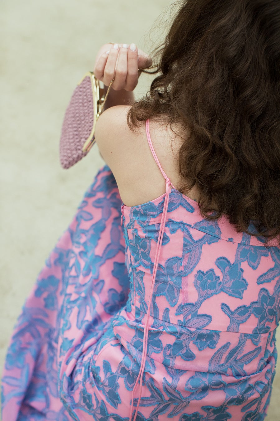 オリジナルのカットジャカード素材を使用した、華やかなキャミワンピース。