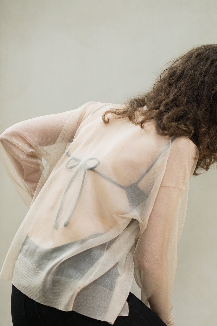 キュッと結んだリボンが愛らしいアクセントを添えてくれるスイムウェア。