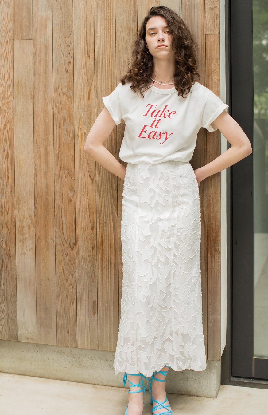 スカートには、オリジナルのボタニカル柄が魅力的な、夏のムード溢れるロングスカート。すっきりとしたナローシルエットを採用し、コーディネートに取り入れやすい1着に仕上げました。