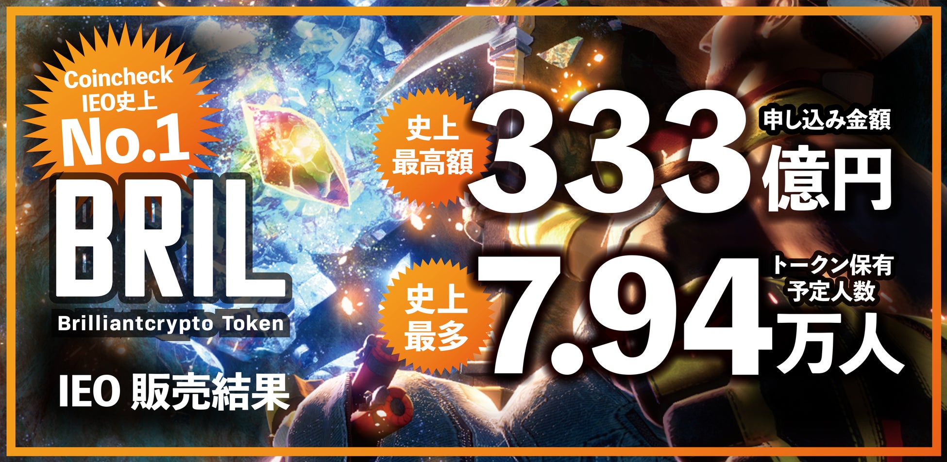 Coincheck IEO史上最高額である333億円のご応募があったこと、なにより7.94万人という非常に多くの方に当社のトークンを保有していただけることを非常に光栄に思います。ご応募いただいた皆さまに深く感謝申し上げます。多くのトークン保有者のご期待に応えられるよう、日本発のグローバルプロジェクトとして成功を目指し全力で邁進していく所存です。6月17日にいよいよリリースを迎えるBrilliantcryptoにご期待ください。