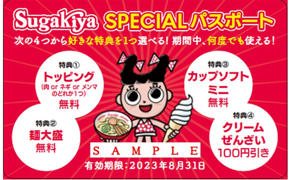 ●パスポート1枚につき、4名様までご利用いただけます(麺類4品で特典4つまで)
