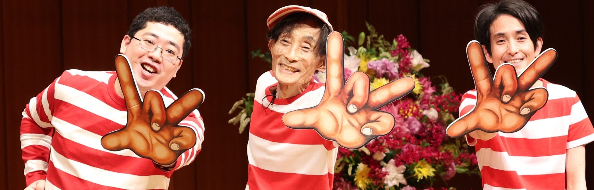 楳図さんと、楳図ファンでもある芸人・漫画家の矢部太郎選考委員=写真右=が登場。楳図さんは『まことちゃん』や『漂流教室』など自作を次々と挙げながら、ホラー、SF、ギャグなど多岐に渡る創作の軌跡を語りました。