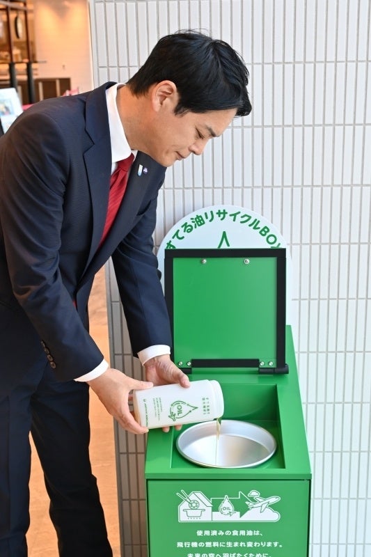”すてる油で飛行機を飛ばす”横浜市とJALの取組が拡大!横浜市庁舎の「もとまちユニオン」で家庭から出る廃食油の回収を開始