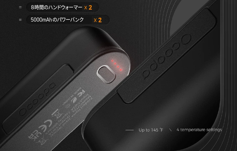 2つに分離して両手を同時に温め可/USB-C充電式/約8時間保温/大容量5000mAh