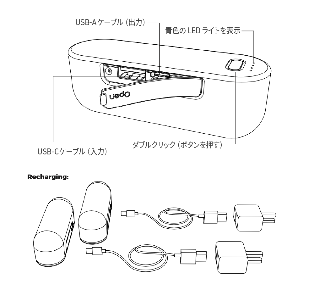 ・充電ケーブルと5V2A USB 充電器を使用することをお勧めします。