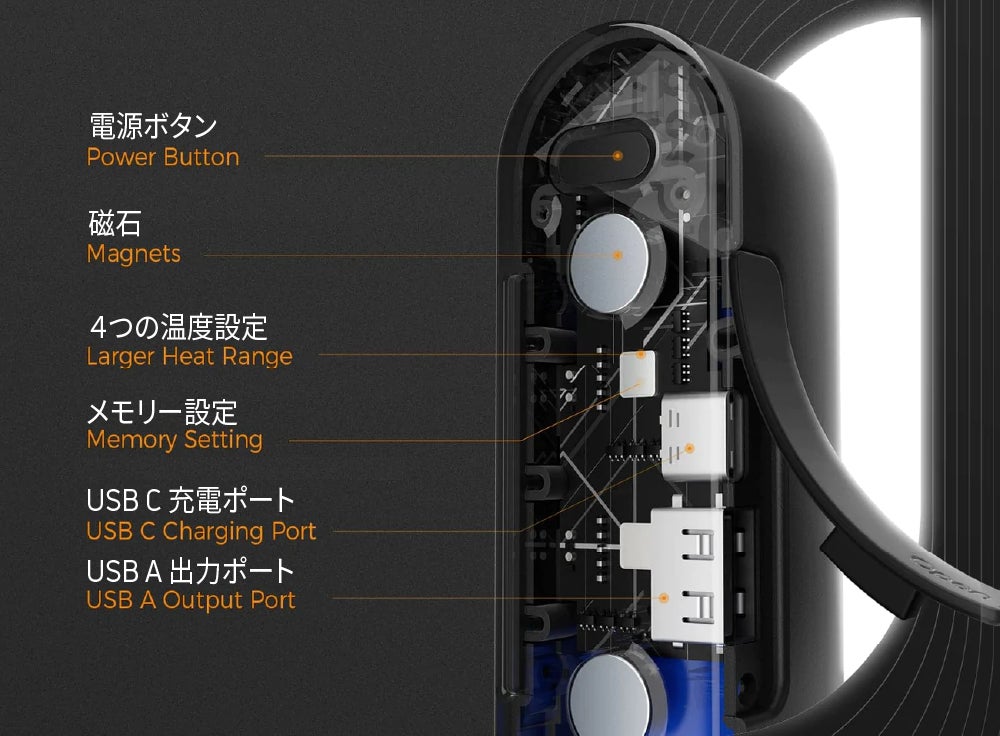 - カイロの性能を徹底的に追求した充電式カイロ&モバイルバッテリー