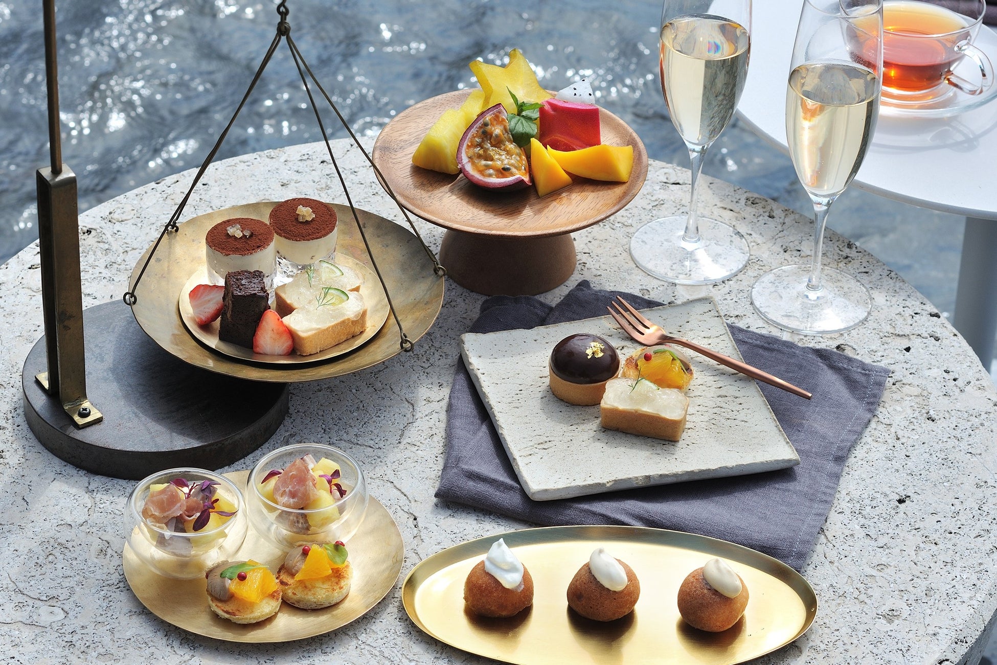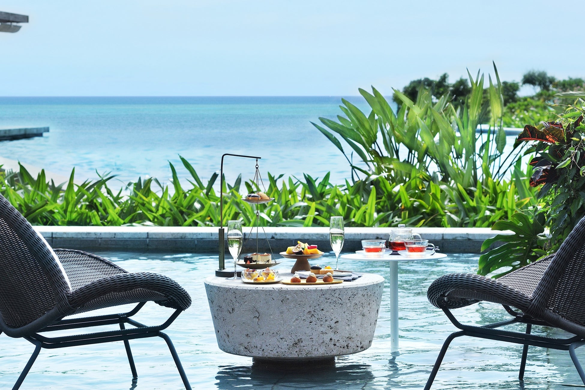 【星のや沖縄】冬も暖かなプールサイドで優雅に過ごしながら、沖縄産ラム酒の芳醇な香りをスイーツで堪能する「琥珀香るアフタヌーンティー」提供