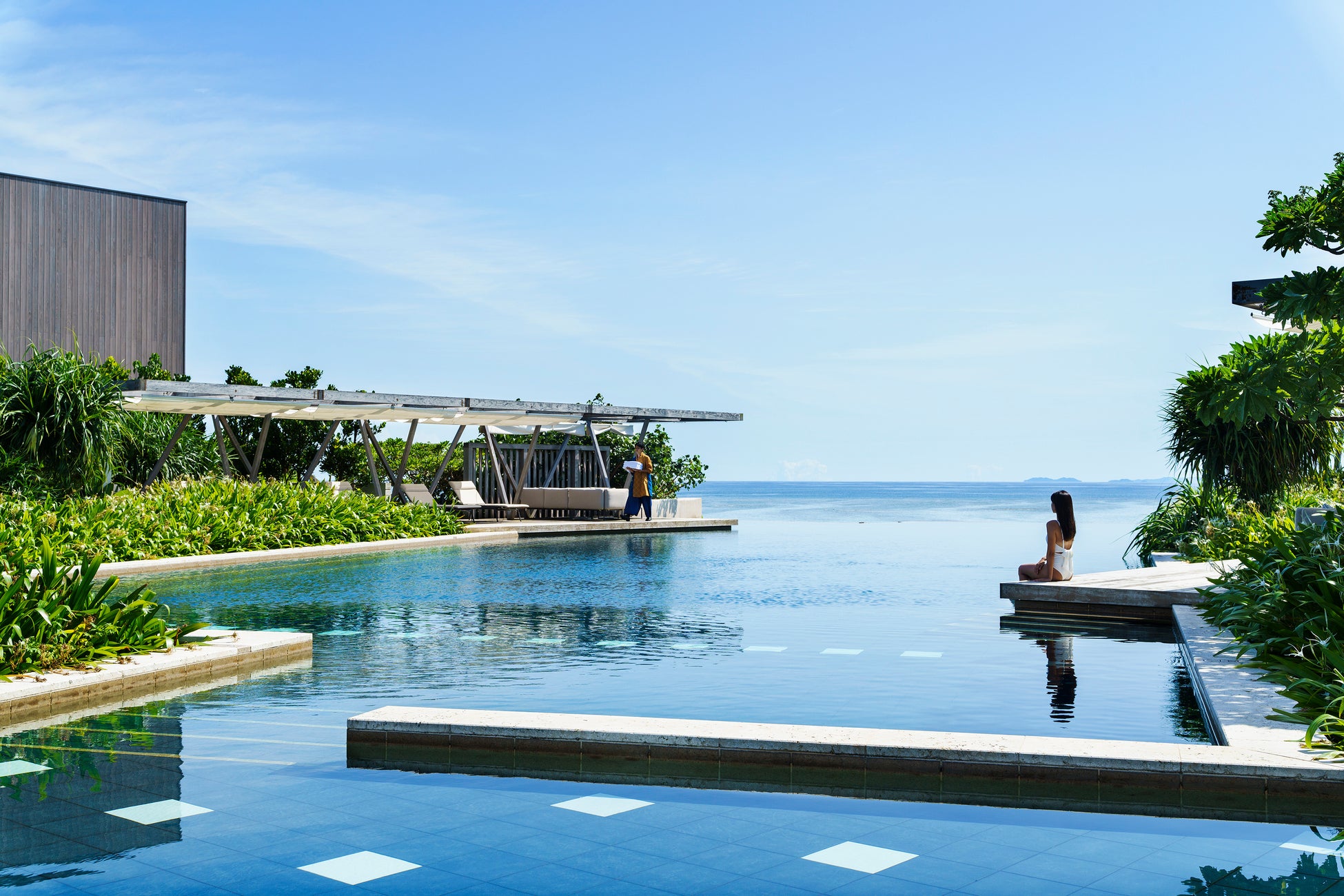 星のや沖縄のプールは、加温式で温かく冬でも利用できます。浅瀬のエリアもあるプールサイドでは、お茶やスイーツを楽しむだけでなく、時折プールに入りリラックスすることも可能です。海に溶け込むように広がるインフィニティプールの様々な眺めの良い場所にあるソファーやビーチベッドで寛ぎながら、南国らしい植物が創り出す空間で心満たされるひとときを過ごします。