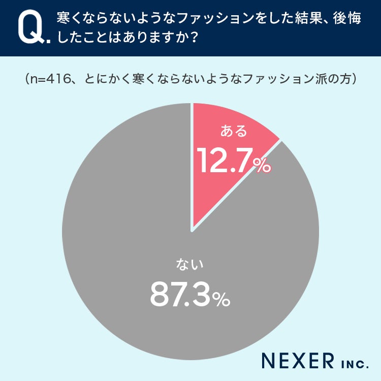 12.7%の方が、寒くならないようなファッションをした結果、後悔したことが「ある」と回答しています。