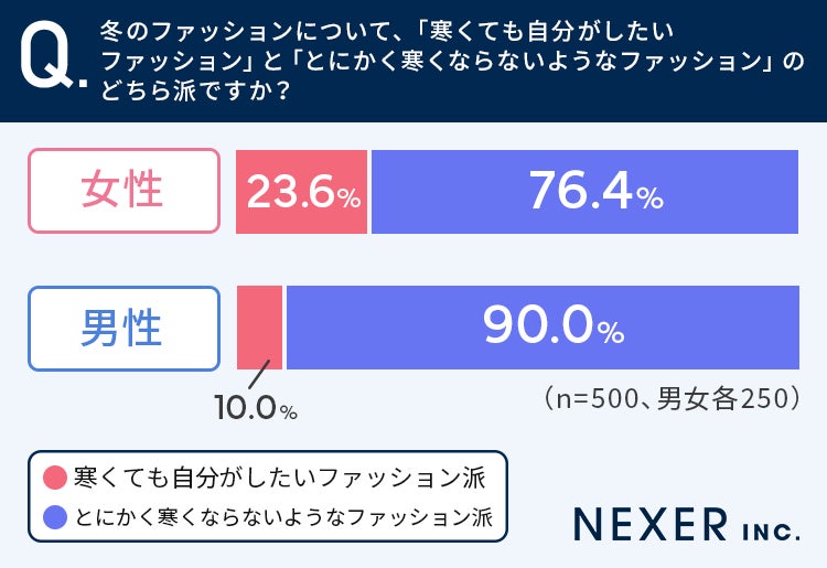 女性の76.4%、男性の90%が「とにかく寒くならないようなファッション派」と回答しています。