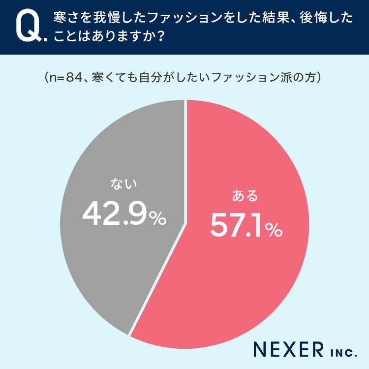 ■57.1%が寒さを我慢したファッションをした結果、後悔したことが「ある」