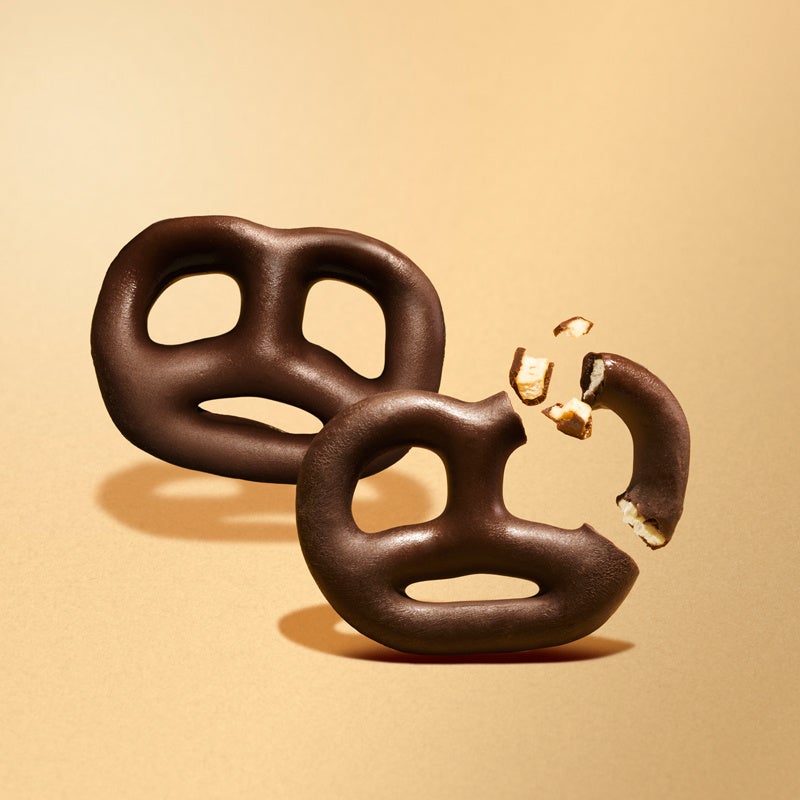 【内容】塩味がアクセントのプレッツェルに、くちどけのよいダークチョコレートをたっぷりかけました。濃厚でビターなチョコの味わいが楽しめます。