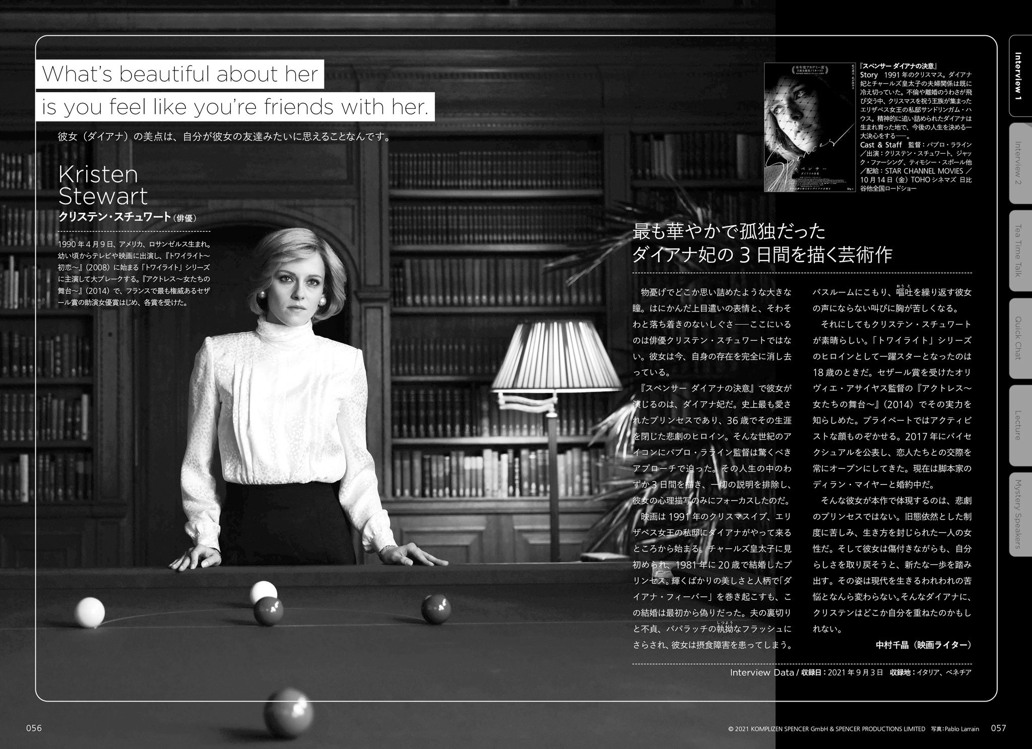 イギリスの故ダイアナ元皇太子妃をクリステン・スチュワートが演じた映画『スペンサー ダイアナの決意』がこの秋、日本でも公開されます。スチュワートの外見がダイアナにそっくりなことでも話題を呼んでいる本作ですが、見どころはやはり、誰にも到達し得ない彼女の内面に迫るスチュワートの演技です。苦悩する皇太子妃の、王室のベールに包まれた日々のある3日間を、どんなふうに切り取り、どう描き出したのか、お聞きください。