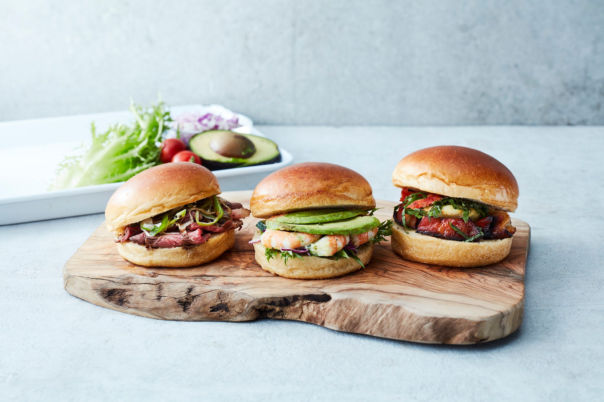 「ローストビーフバーガー」は、ローストビーフとローストしたネギをサンドし、仕上げにバルサミコソースを絡めたお肉のジューシーさを味わえるハンバーガーに。「チミチュリチキンバーガー」は、チキンとポテトに大葉が香る特製和風チミチュリソースをサンドした大人な酸味が味わえる一品。そして「エビアボカドバーガー」は、プリプリのエビにバジルマヨを絡め、アボカドをたっぷりとサンドしたまろやかな味わいのハンバーガーに仕上げました。