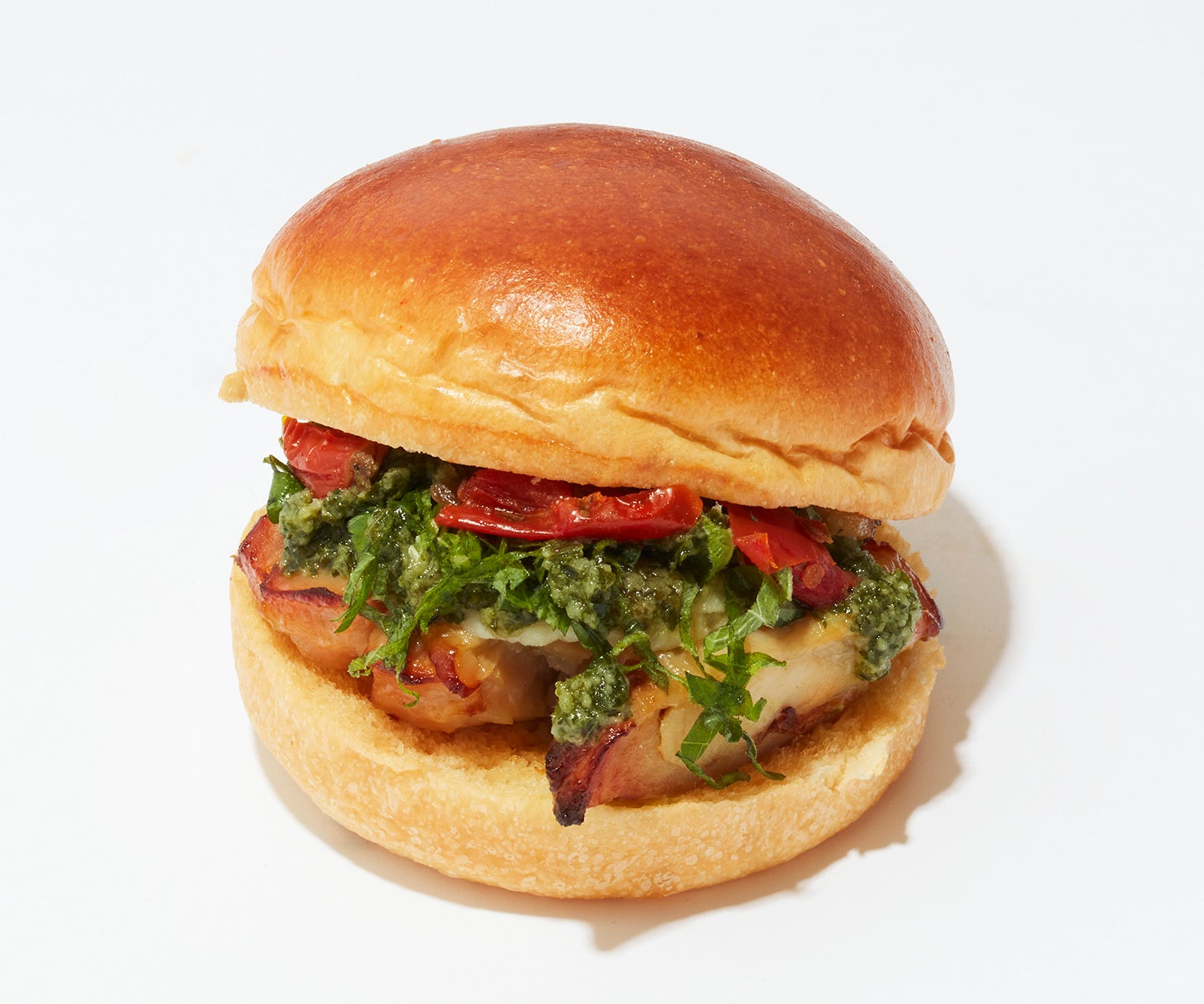 チキンとポテトに、大葉香る特製和風チミチュリソースをサンドしたハンバーガー。