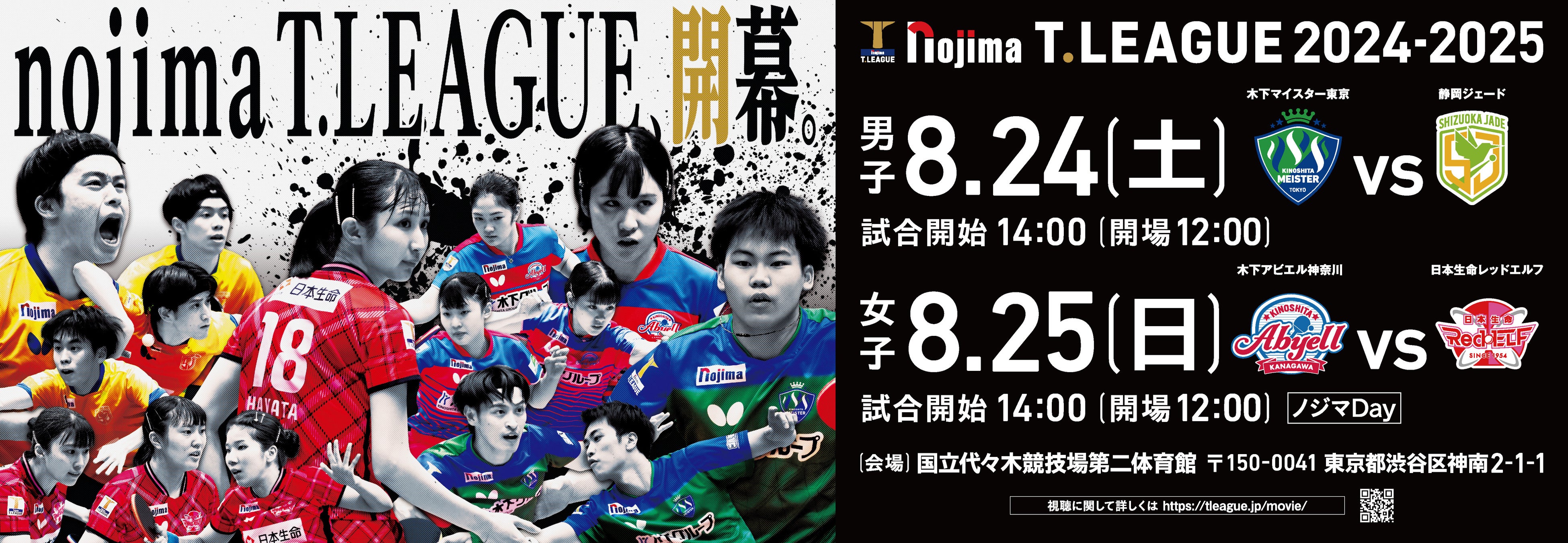 ノジマTリーグ 2024-2025シーズン 公式戦 8月24日開催木下マイスター東京 vs静岡ジェード ベンチ入り選手発表